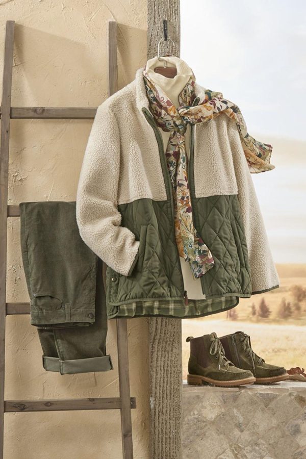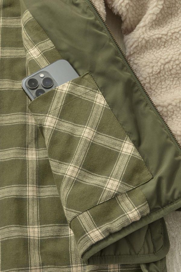 We updated a favorite vest into a cozy jacket – so you can enjoy the same great look into chillier seasons. Quilting and faux sherpa fleece combine with soft plaid flannel inside for a textural mix. Midweight style has a zip front and slight high-low hem with side snaps. Flannel-lined welt pockets, plus two inside patch pockets.