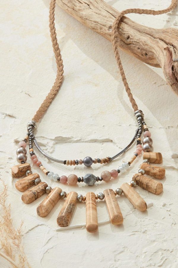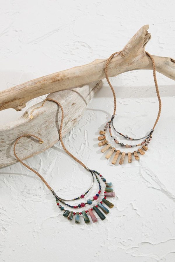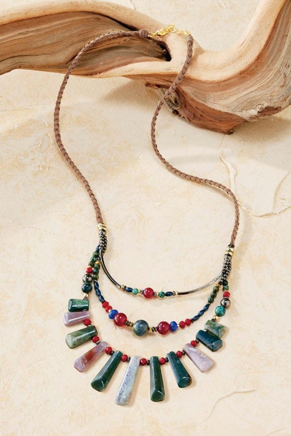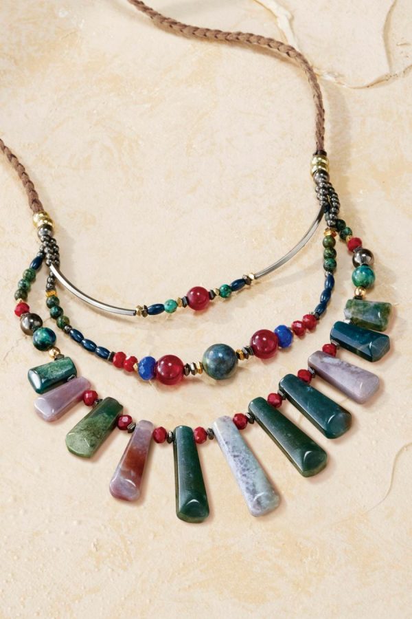 Colorfully yours, with stones of genuine agate and quartz paired with crystal beads – pre-arranged in three tiers, for a statement piece that falls perfectly every time.