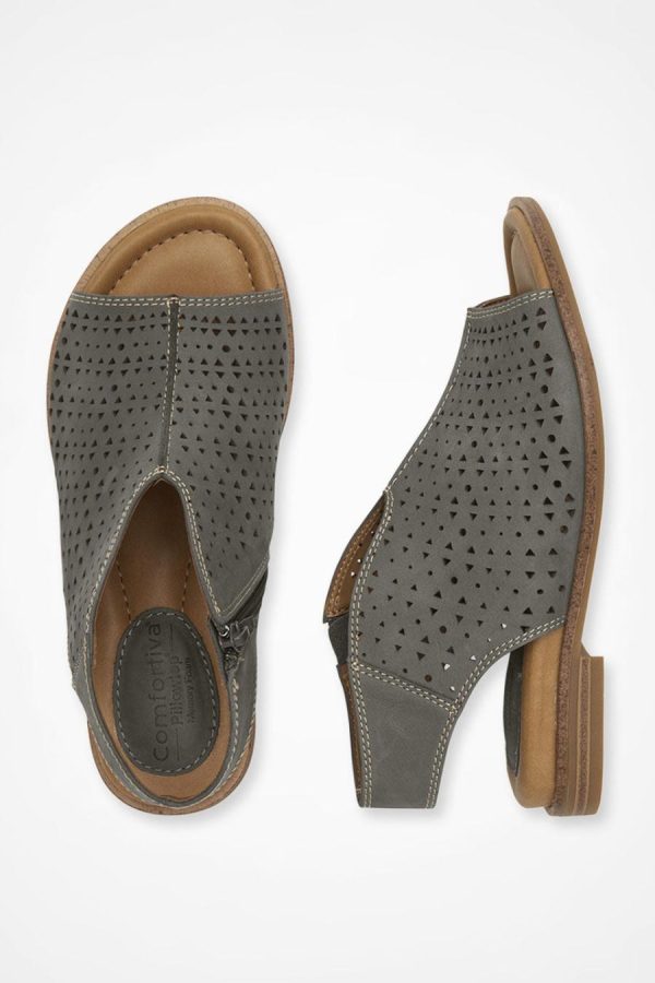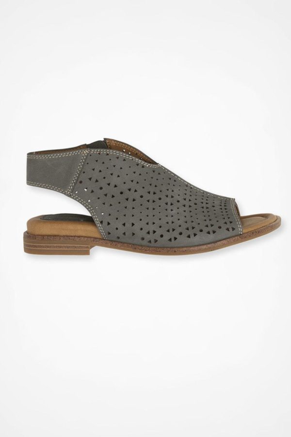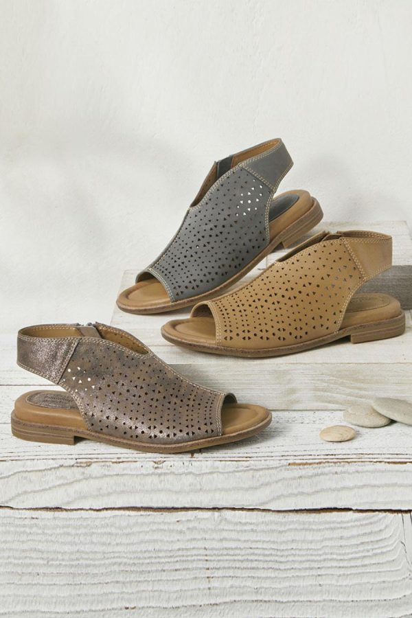 The best of both worlds, with the style of a sandal and the coverage of a shoe. Perforated suede uppers have wide heel straps with buckle closures.