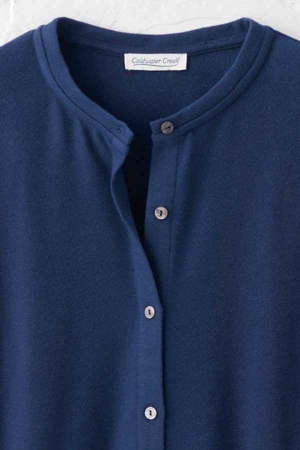 So soft and lightweight, you’ll want to wear it everywhere – and you can. Easy-draping, versatile top has a full button front and long sleeves.