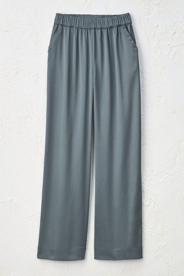 Graceful and easy, with a satiny flow. These lightweight satin pants offer both stretch and sheen, with the ease of a pull-on waist. Relaxed through hips and thighs, with slant pockets.