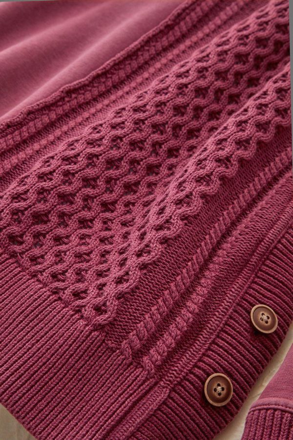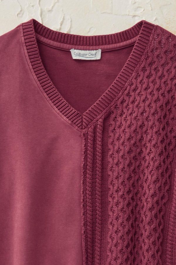 This vintage wash sweatshirt highlights a rich combination of French terry and honeycomb sweater knit textures with functional side buttons for a casual style with unique details. Wide ribbed hem. V-neck, ribbed trim.