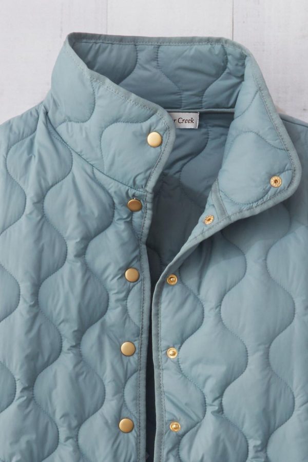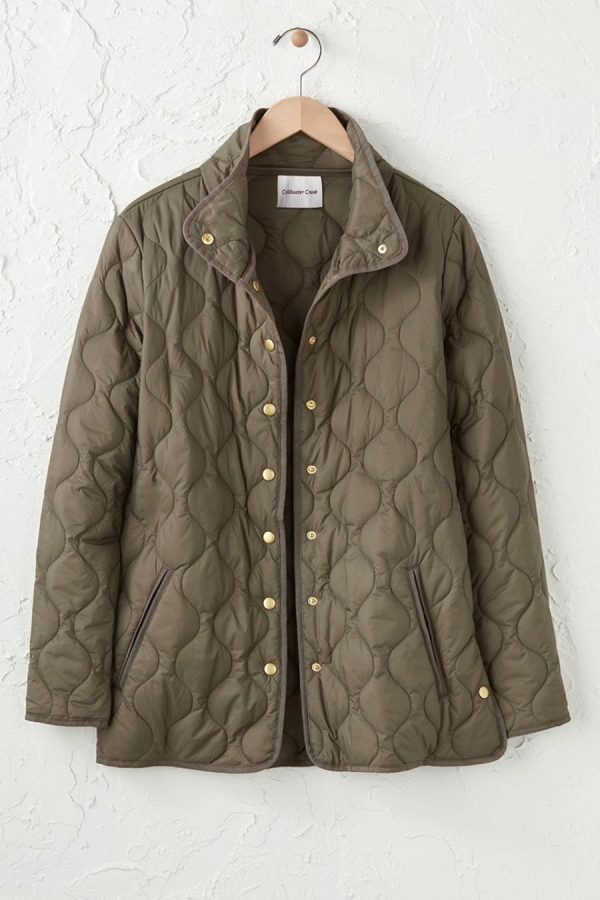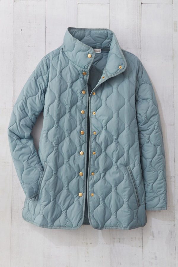 The one-coat wonder for crossing seasons – at only 12 oz., it’s ultra-lightweight and packable, with a chill-chaser mockneck and full snap front. Side slits have snap closures.
