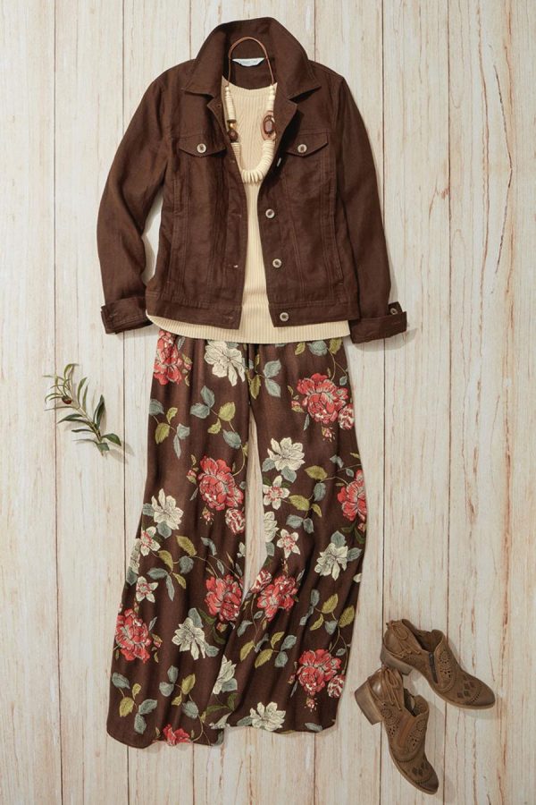 Wide-leg, pull-on palazzo pants in expressive floral print flow gracefully with every step. The easy-drape silhouette flatters while the comfortable smocked waist moves with you. Designed with functional, on-seam pockets. Print placement may vary slightly. Relaxed through hips. High rise sits at the waist, 44″ leg opening.